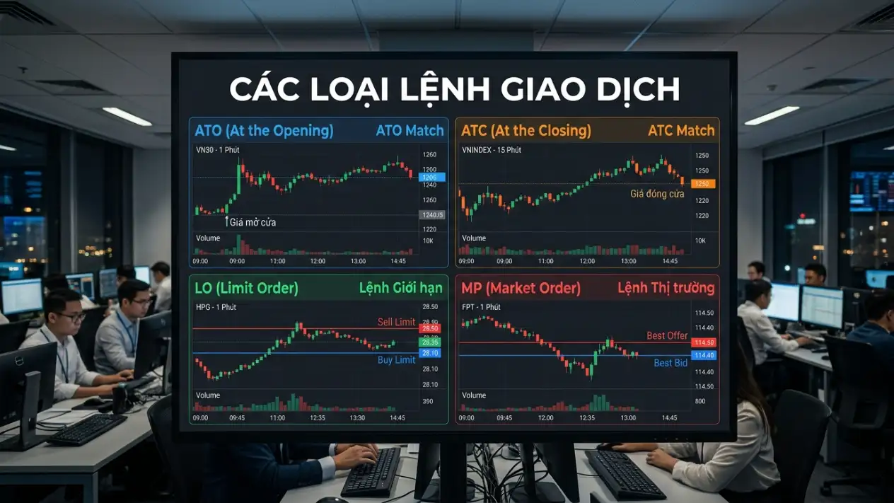 Các loại lệnh giao dịch chứng khoán (ATO, ATC, LO, MTL) & Luật chơi mới thời KRX 2026