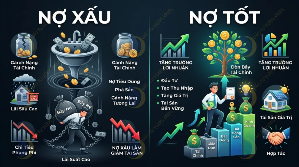 Sự khác biệt nằm ở “mục đích sử dụng” và “tỷ suất sinh lời”. Nếu bạn vay 100 triệu với lãi suất 10%/năm để mua một chiếc SH đi chơi, chiếc xe sẽ mất giá dần, trong khi bạn phải è cổ trả cả gốc lẫn lãi – đó là nợ xấu. Nhưng nếu bạn dùng 100 triệu đó để đầu tư vào một mô hình kinh doanh online mang lại lợi nhuận 30%/năm, khoản vay này giúp bạn dư ra 20% biên độ lợi nhuận – đó chính là nợ tốt.