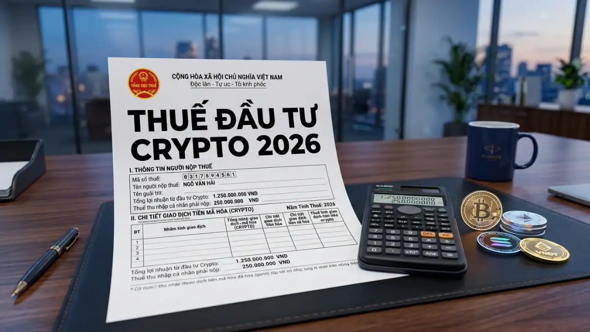 Kỷ nguyên giao dịch Crypto “ẩn danh” và không phải nộp thuế tại Việt Nam đã chính thức khép lại. Năm 2026 đánh dấu cột mốc lịch sử khi các quy định về quản lý tài sản số và nghĩa vụ thuế bắt đầu có hiệu lực, đặc biệt là sự ra đời của mức thuế 0,1% trên tổng giá trị giao dịch. Thuộc hệ thống Cẩm nang Đầu tư Crypto/Tiền điện tử và nhóm bài viết Bảo mật, Pháp lý và Cảnh báo lừa đảo Crypto, bài viết này là bản hướng dẫn tuân thủ pháp luật chi tiết nhất, giúp bạn tối ưu hóa lợi nhuận, kê khai minh bạch và có thể kê cao gối ngủ mà không lo sợ rủi ro truy thu phạt hay đóng băng tài khoản ngân hàng.